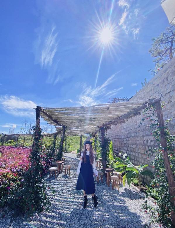 Các khu check-in kết hợp với quang cảnh thiên nhiên, vườn hoa, tạo tổng thể hài hòa. Khu chỗ ngồi đa dạng từ ngoài trời đến trong nhà. Nếu ưa thích không gian mở, bạn có thể đi dạo trong vườn, ngắm nhiều loài hoa. Khu vực trong nhà, mái hiên phù hợp ngồi buổi trưa. Tại đây cũng có khu cắm trại, tổ chức tiệc nướng BBQ cho khách check-in về đêm.