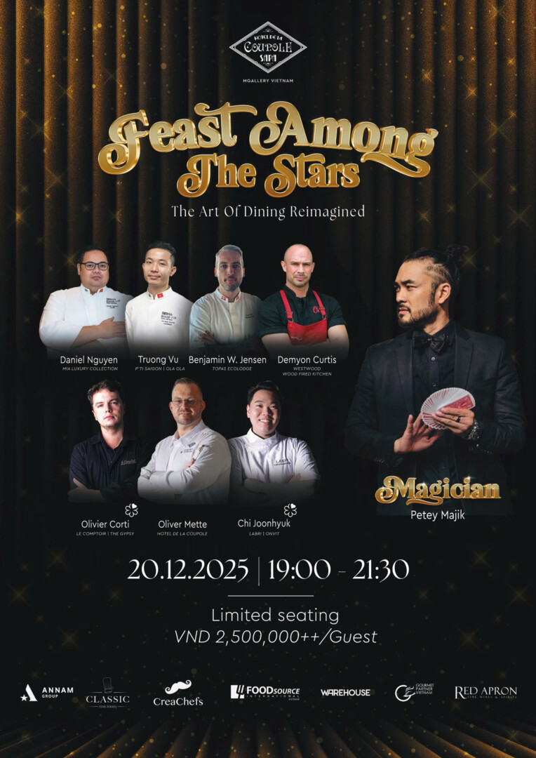 Ngày 20 tháng 12, hành trình ẩm thực tiếp tục với Feast Among The Stars – trải nghiệm ẩm thực độc đáo nhất của Hotel de la Coupole và cũng là một trong những sự kiện được mong đợi nhất trong năm.