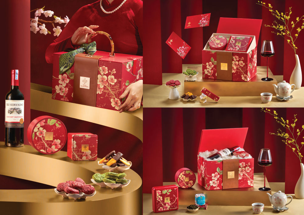 To suit individual preferences, the gift box may be elevated with premium beverage options including Concha Y Toro Reservado Cabernet Sauvignon, Jim Beam Bourbon Whisky, Johnnie Walker Black Label, Glenlivet 12-Year Single Malt, or Ballantine’s 21-Year Blended Scotch.